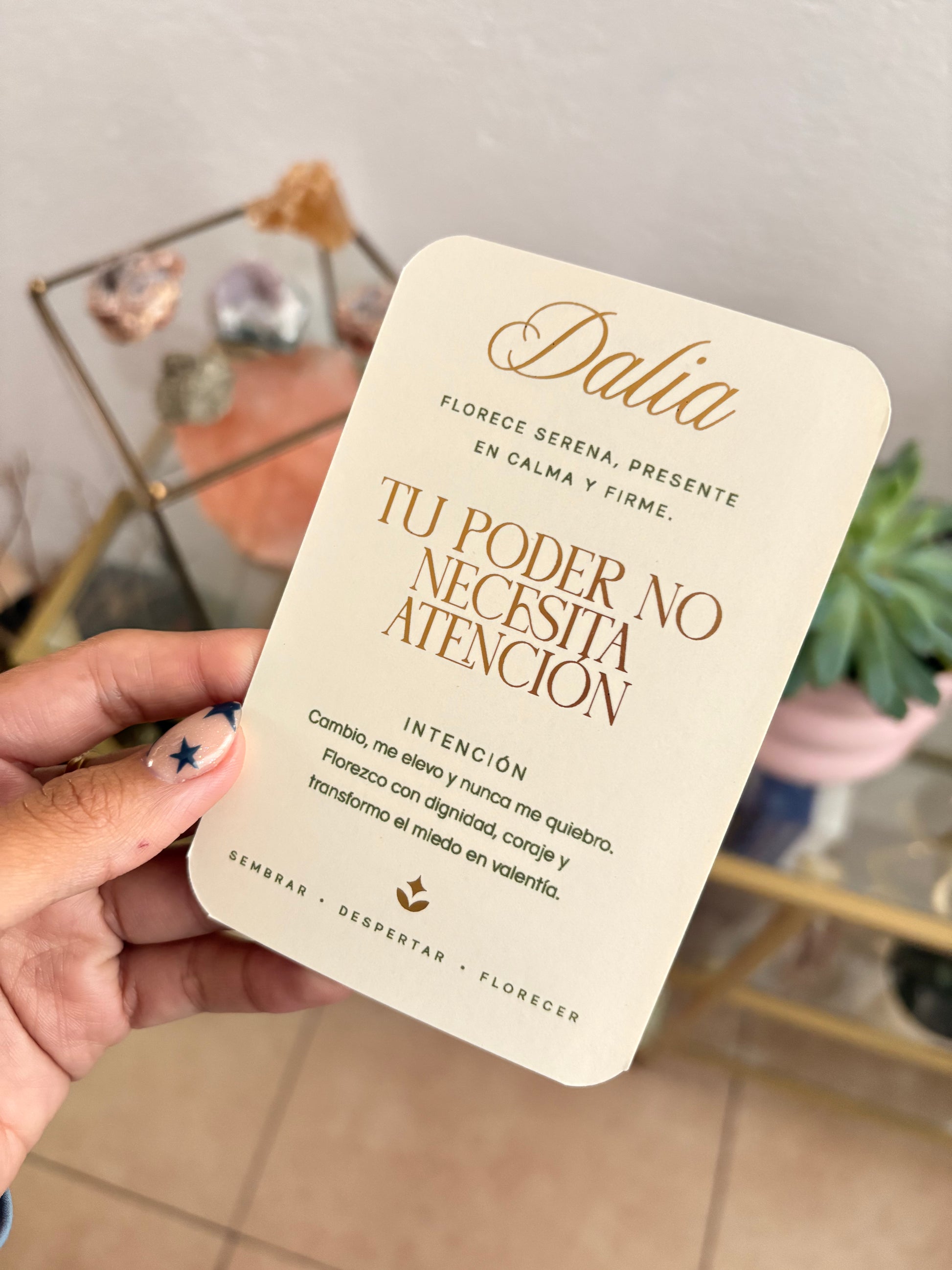 Una colección de 30 tarjetas diseñadas para acompañarte en tu día a día, llenas de propósito y significado. Cada carta es una invitación a recordar tu luz, abrazar tus ciclos y florecer a tu propio ritmo.